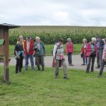 Eine abwechslungsreiche Tour, von Alfred mit viel Witz und Wissen gewürzt: So erfuhr man von Willy Bürkle dem Erbauer von „Gutenhalde“, einem genialen Tausensassa und Geschäftsmann der Vor- und Nachkriegsjahre. Erfolgreich u.a. mit Speiseölen, Lebensmitteln oder Radios die in Tongehäuse eingebaut wurden, gefertigt in den Keramikwerkstätten von Gutenhalde, heute eine Waldorfschule. Interessant auch die Geschichte des Weinbaus Bolandens 1383 bis 1977 mit einst 15 Hektar Rebfläche. Die Kelter wird seit 1966 vom Albverein Bonlanden als Vereinseim genützt, mit fast 700 Mitgliedern eine der größten Ortsgruppen des Albvereins. Mittagsrast und Höhepunkt der Wanderung mit grandioser Aussicht vom Uhlbergturm, einer Betonkonstruktion aus den 60er Jahren, übrigens bewirtschaftet von einem sehr rührigen Pächter. Der Rückweg ging entlang goldgelber Gerstenfeldern weiter durch Bonlanden und nach einem kühlen Getränk im Hasenheim wieder zur Gutenhalde.