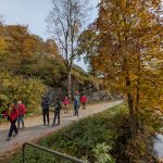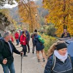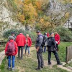 am vergangenen Sonntag bei unserer Herbstwanderung. 15 Teilnehmer erlebten eine tolle 14 Km Wanderung von Herrlingen bei Blaustein über Weidach zur Weidacher Hütte, unserem Mittagsziel.  Auch der Weiterweg über die Hochfläche, vorbei an Dolinen, mächtigen Eichen, goldenen Ahornbäumen und weiten gelb leuchtenden Maisfeldern hatte seinen Reiz. Wildromantisch war der teils knifflige Abstieg durch imposannte Felsformationen. Alle waren doch recht trittsicher und durch Geländer gut gesichert erreichten wir unfallfrei das Naturschutzgebiet Kleines Lautertal.
