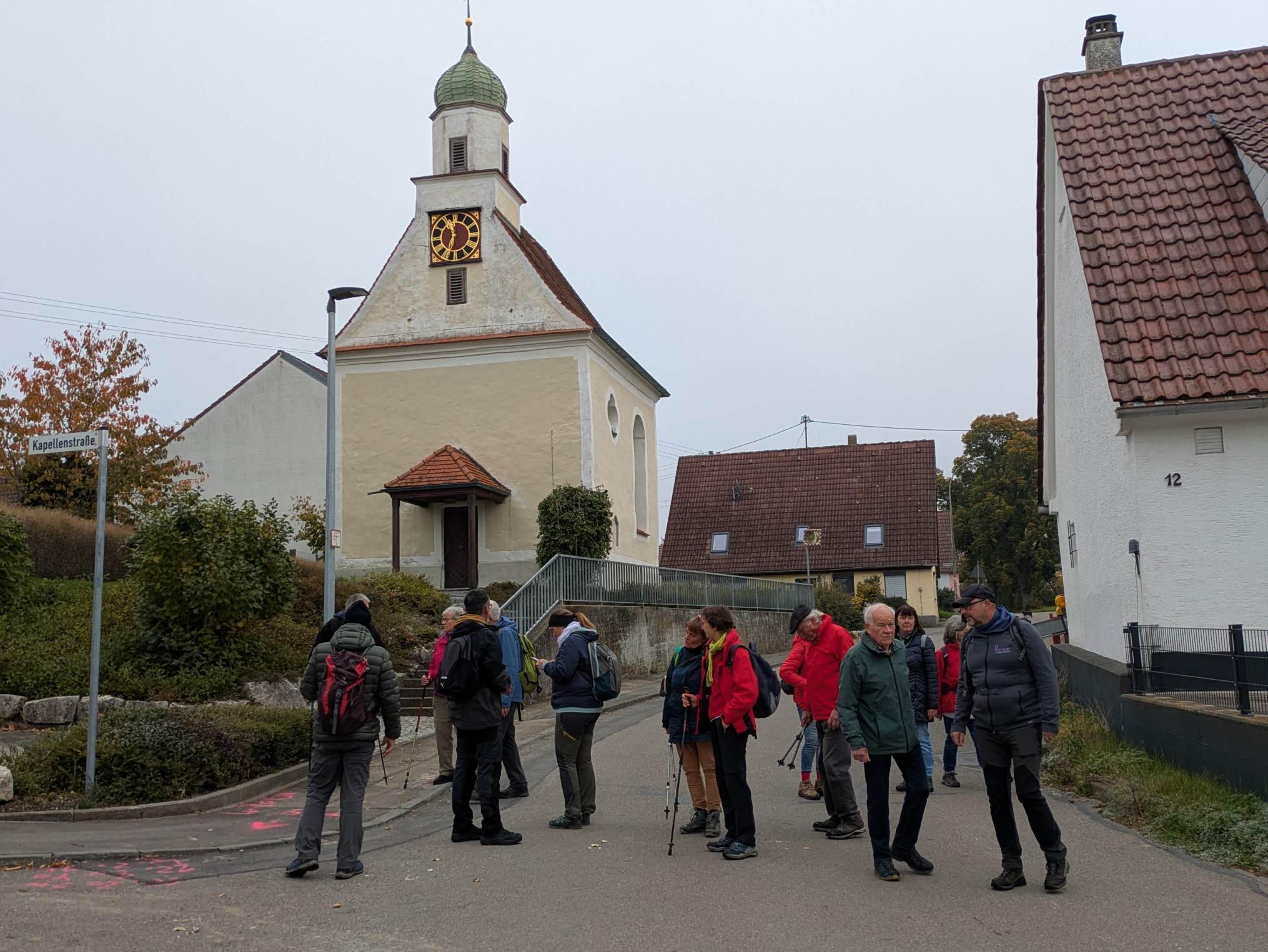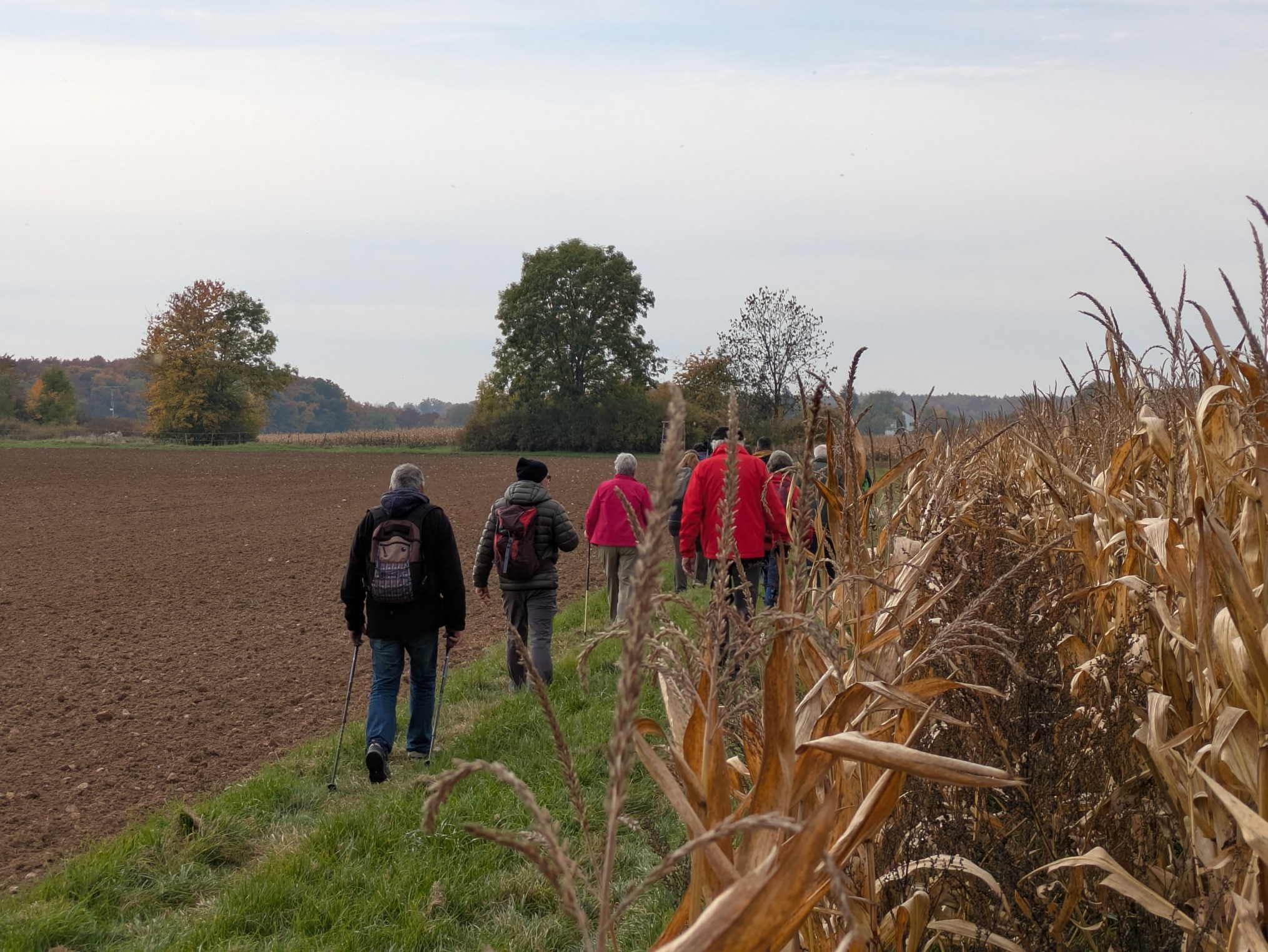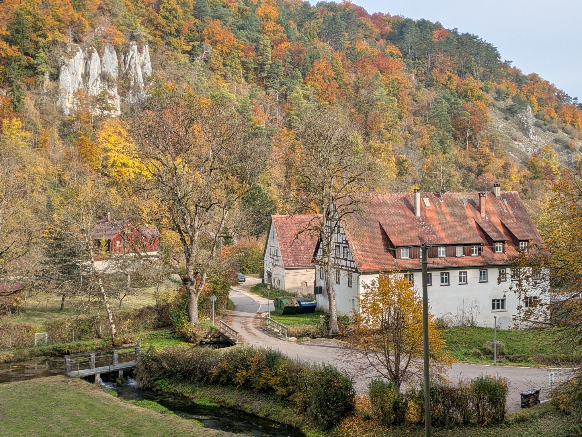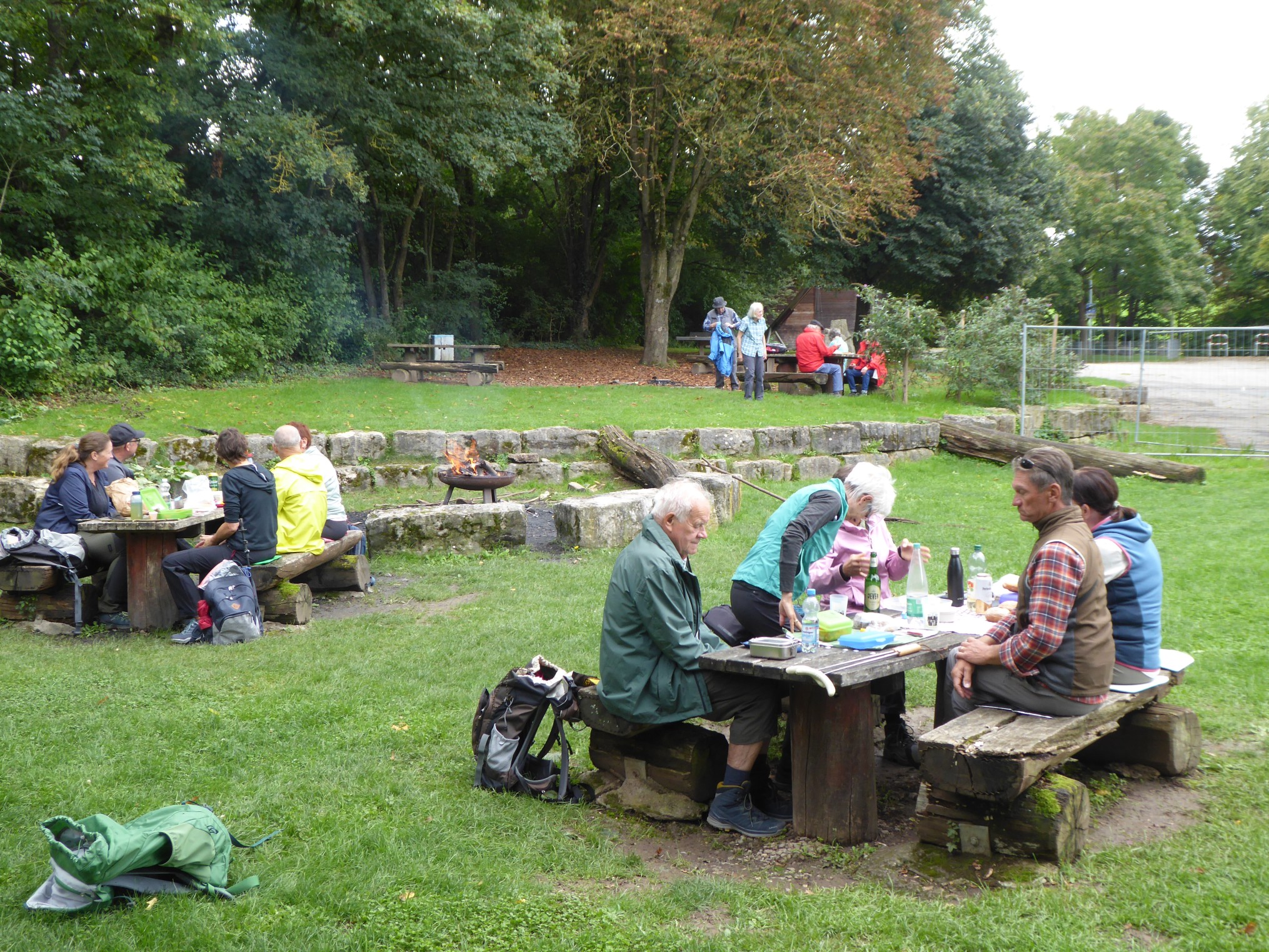 am vergangenen Sonntag bei unserer Herbstwanderung. 15 Teilnehmer erlebten eine tolle 14 Km Wanderung von Herrlingen bei Blaustein über Weidach zur Weidacher Hütte, unserem Mittagsziel.  Auch der Weiterweg über die Hochfläche, vorbei an Dolinen, mächtigen Eichen, goldenen Ahornbäumen und weiten gelb leuchtenden Maisfeldern hatte seinen Reiz. Wildromantisch war der teils knifflige Abstieg durch imposannte Felsformationen. Alle waren doch recht trittsicher und durch Geländer gut gesichert erreichten wir unfallfrei das Naturschutzgebiet Kleines Lautertal.
