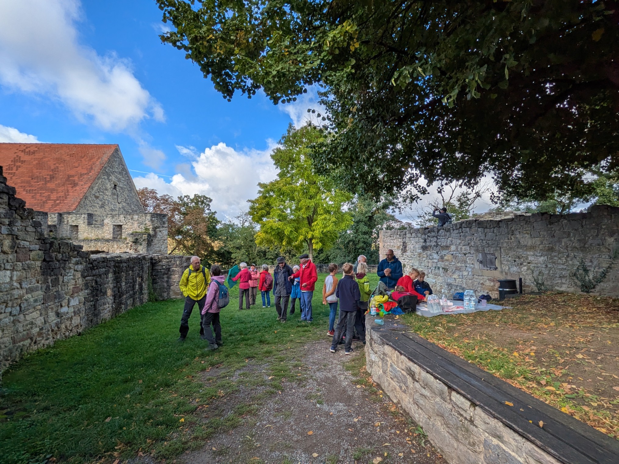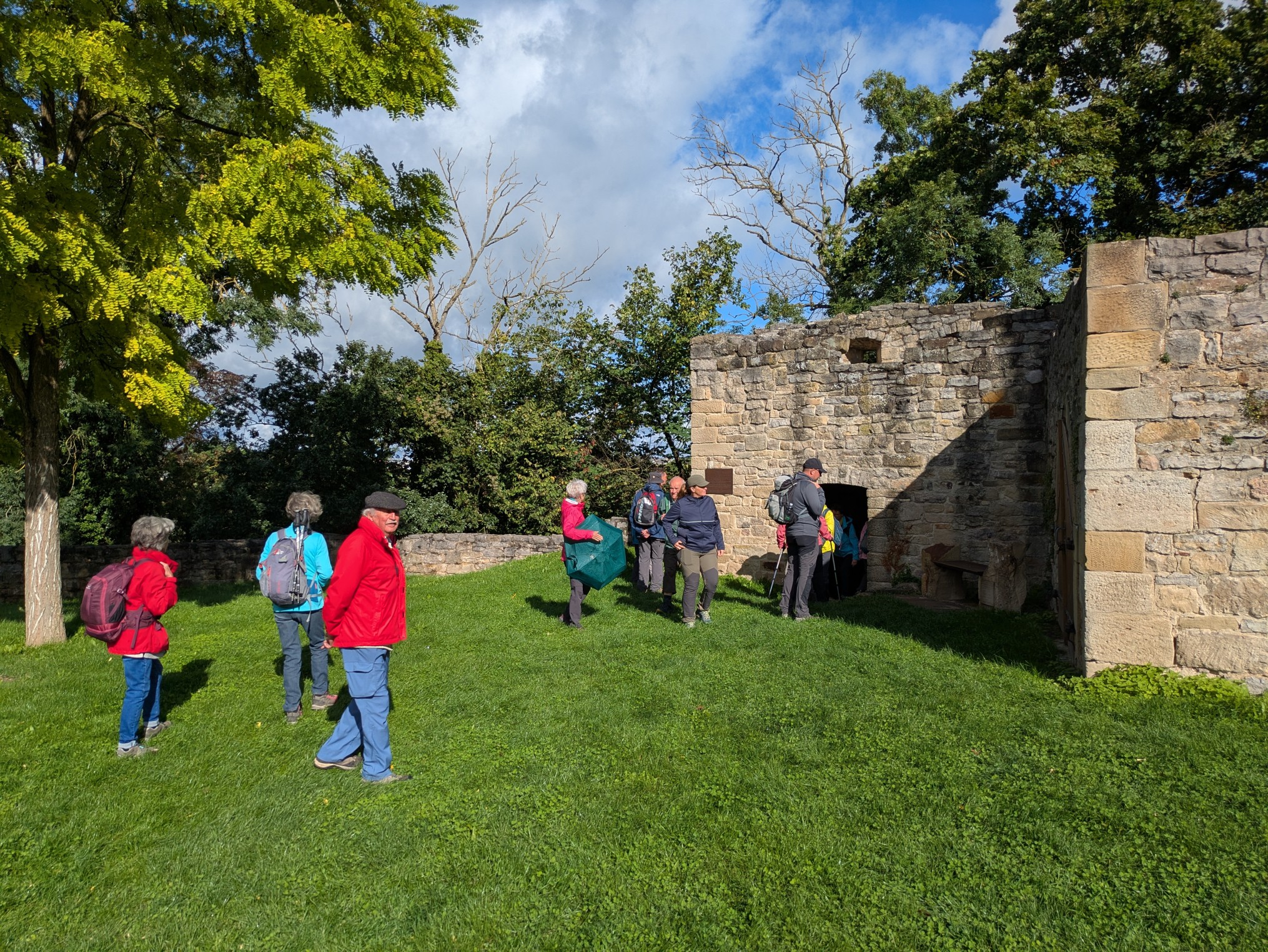 Die Schirme brauchte man noch beim Treff am Notzinger Rathaus, doch schon bei der Anfahrt zu unserem Ziel, der Nippenburg schob Petrus die Wolken beiseite und ideales Wanderwetter bekleidete uns über die herrliche Wanderstrecke.